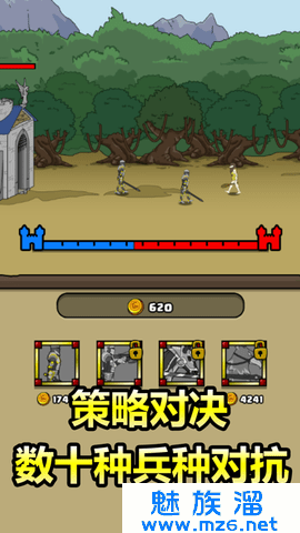 3、你指挥你的军队买兵买武器守卫领土,进化,升级,直到摧毁敌人的堡垒。