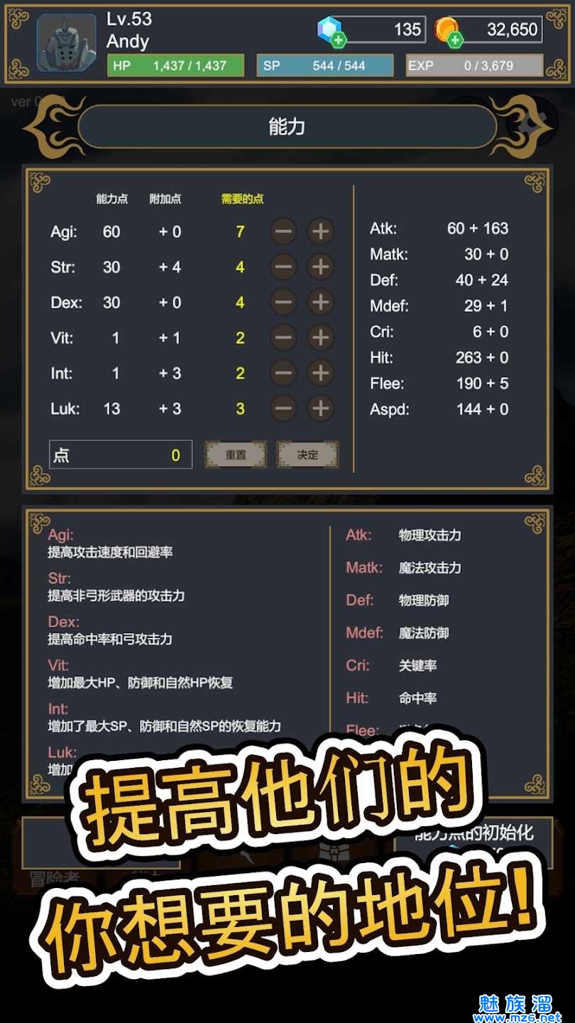 2、角色升级其实蛮容易的游戏初期,干掉两三个敌人即可以升级了,升级后需要选择升级方向可以选择增加敏捷属性、防御属性、魔法属性。