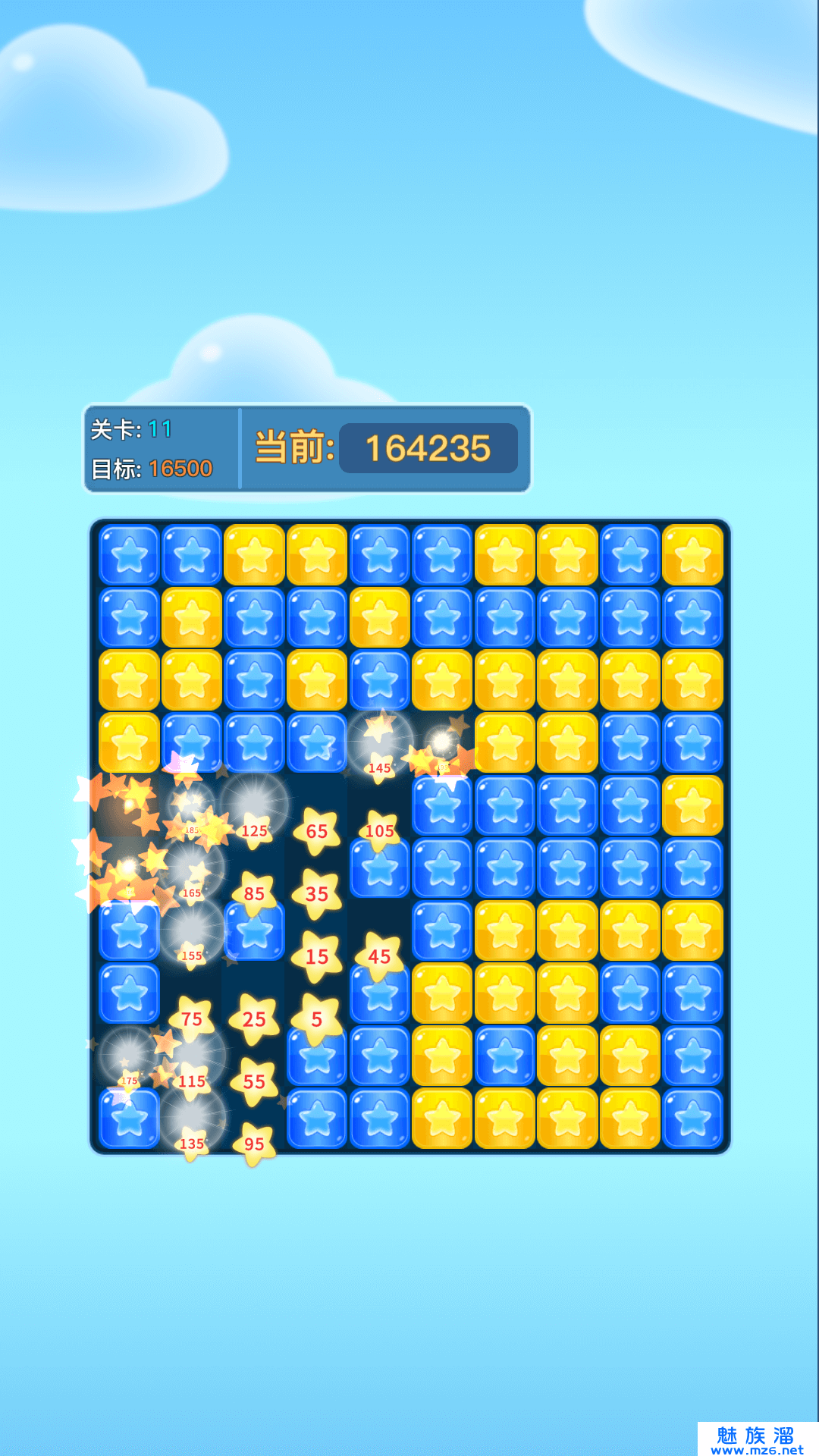 1.仔细的观察手机的屏幕,将所有的方块全部消除,只要点击相同的方块,他们就会自动消失。