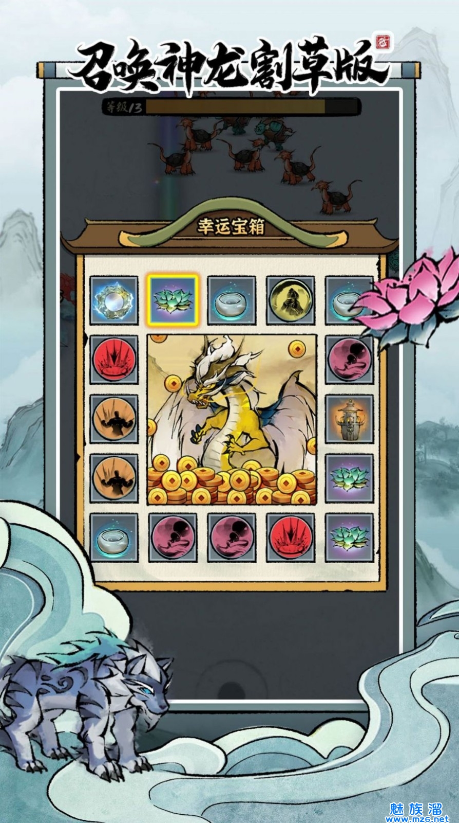 2、割草游戏,超多神龙等你召唤,操控它们打怪,释放出超强的技能。