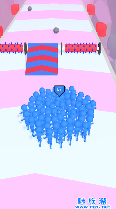 【人群控制游戏】一款独特的跑酷游戏有两个群体,红色和蓝色,他们互相对抗,竞争同一个跑酷场地。你将作为其中一个人加入游戏并冲刺。有很多障碍和陷阱,让你需要躲避或攻击。同时,你应该在关键时刻保持灵活的技能,并在队友之间进行合作和壮举。目标是通过更多的障碍物到达终点线,是真的超级好玩呀,不妨下载试试。