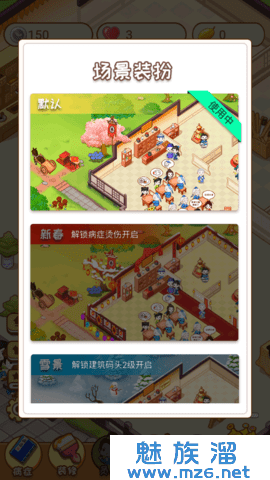 1、卡通风格的古代手游,你要经营一家医学博物馆,装修升级免费,招聘更多的工作人员为你工作。