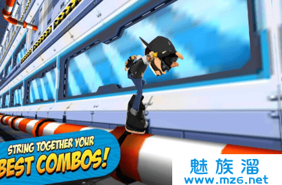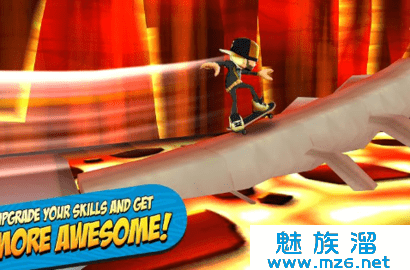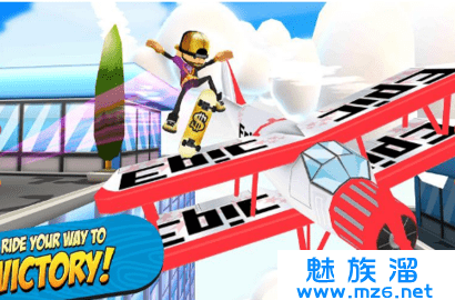 1、是一款滑板闯关类游戏,玩家在游戏里面使用滑板做出许多动作来躲避障碍收集金币。
