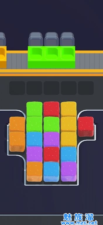 3、游戏中拥有各种形状和颜色的果冻块,你需要将它们正确地拼接在一起,让它们消失。