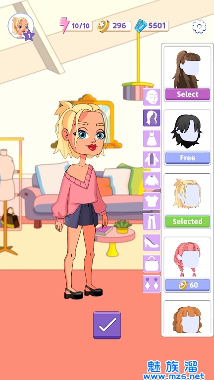 2、海量服饰、配饰,可以搭配出无数种时尚造型;