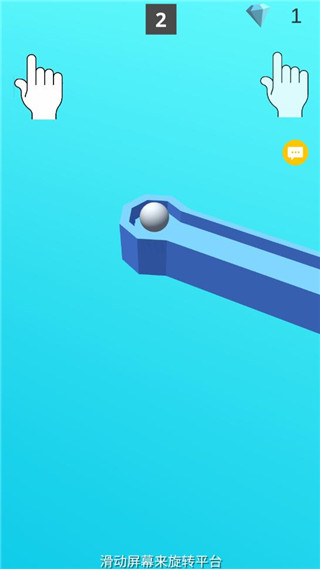 3、滑动屏幕来旋转平台使其下落滚动,让小球下落到制定地方即算通关关卡