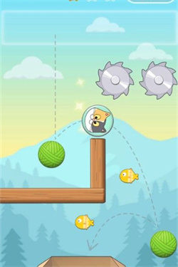 在弹射的过程中,会有小鱼或者是齿轮出现,小鱼可以让小猫吃点,齿轮一定要想办法避开,不能碰到。