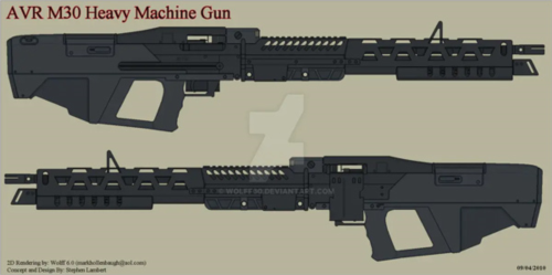 M60机枪:经过改造的M60机枪,装有可让射手以步枪方式据枪的护手(潘多拉星重力较低,全枪重量会降至8.5公斤),使用圆形弹鼓,另有阿凡达特供的AVRM30机枪。