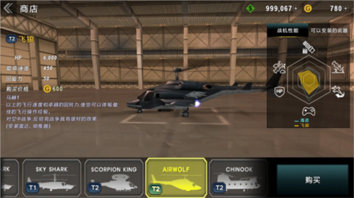 4、此外强化系统也做的非常出色,可以在机库中根据直升机的特性,更换机枪火箭弹等武器以及雷达、助推器等特殊的设备,帮助你的游戏进行的更加容易。