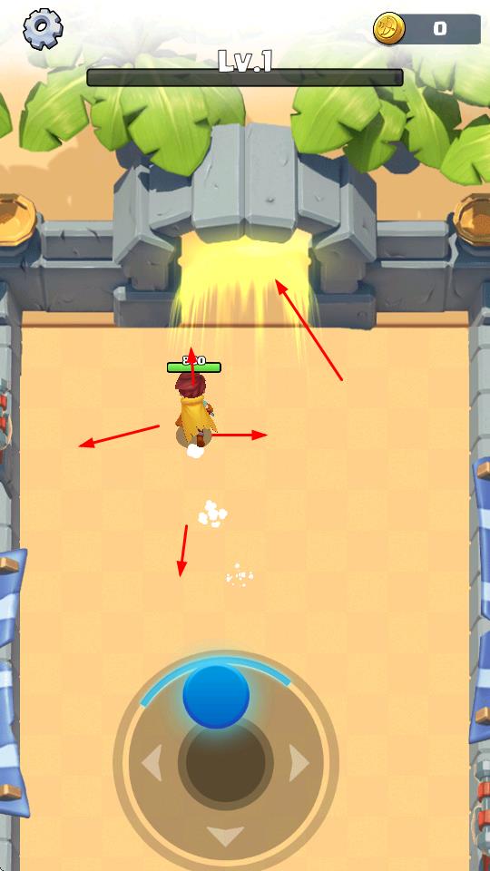 2、借助虚拟摇杆来控制角色在场景里移动,朝着具有发光效果的区域进发,从而开启冒险流程。