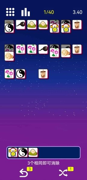 星空消消消这款游戏玩法与羊了个羊颇为相似,以璀璨星河为背景,创新融合“经典消除+元素合并”玩法,带来一场既熟悉又新奇的益智挑战。游戏画面铺满闪烁的星辰元素,从月牙、流星到行星、星云,每一个图标都散发着梦幻光晕,仿佛置身浩瀚宇宙。