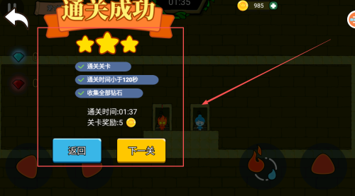 1、游戏设计了红蓝双色钻石收集体系,每位角色必须寻找对应颜色的钻石进行收集。这一设定强化了角色分工与协作必要性,同时增加了关卡探索深度与重复可玩性。
