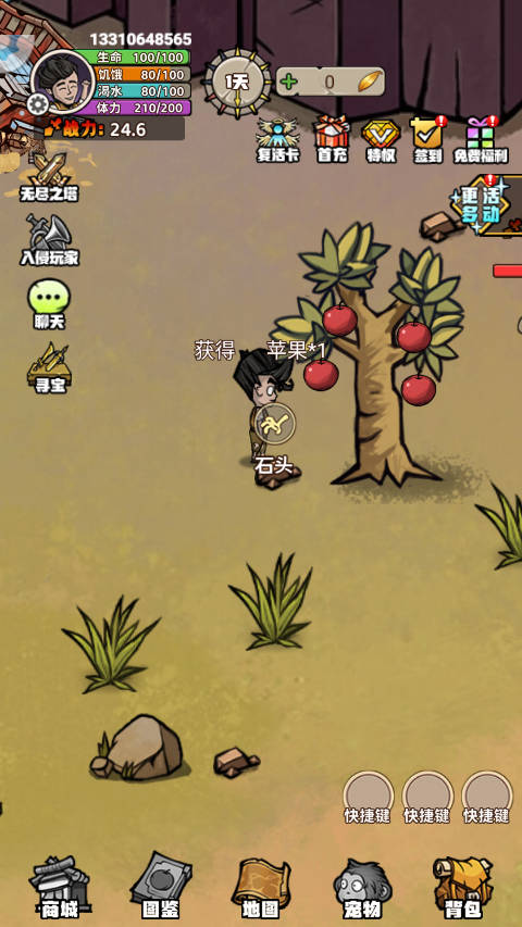 1. 借助采集岛屿上诸如木头、石头以及食物之类的资源,搭建起属于自己的庇护所。