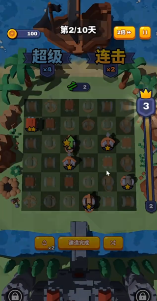 ①“动态合成调整”:战斗中根据海盗波次类型,实时拆解低等级塔(点击塔体选择“拆解”)重新合成,例如遇到BOSS时拆解部分箭塔,合成高伤激光塔;②“技能combo触发”:将冰冻塔与炮塔相邻部署,冰冻触发后立即激活炮塔的“范围爆炸”技能,造成双倍伤害;③“关卡三星技巧”:确保城堡血量≥80%、防御塔合成次数≥5次、海盗全灭,可获得三星评价,解锁额外合成水晶奖励。