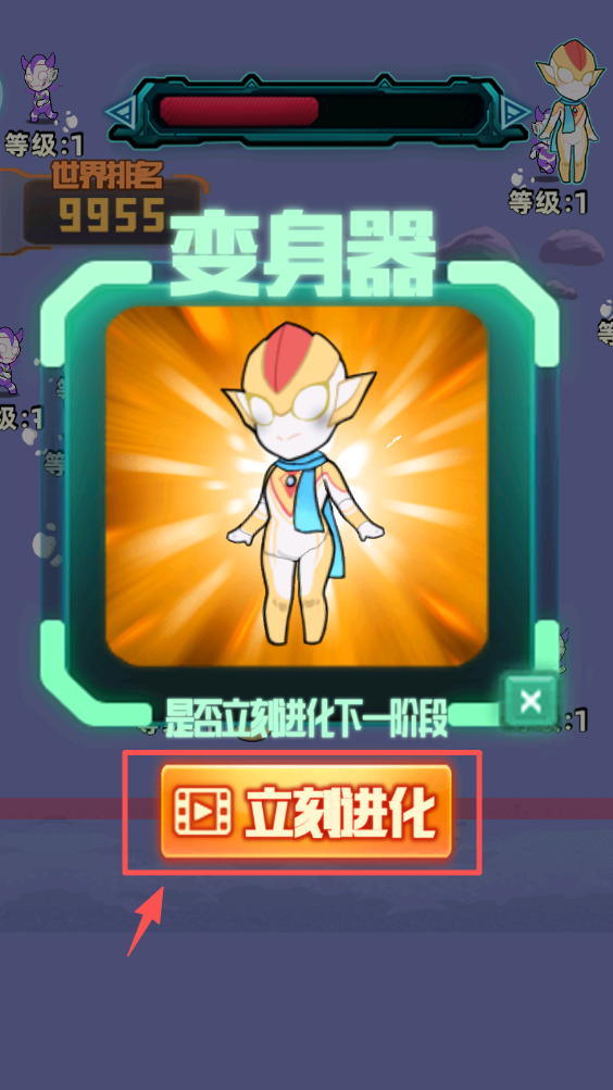 3、使用变身器进化角色。在获得变身器后,点击“立刻进化”按钮,提升角色能力。