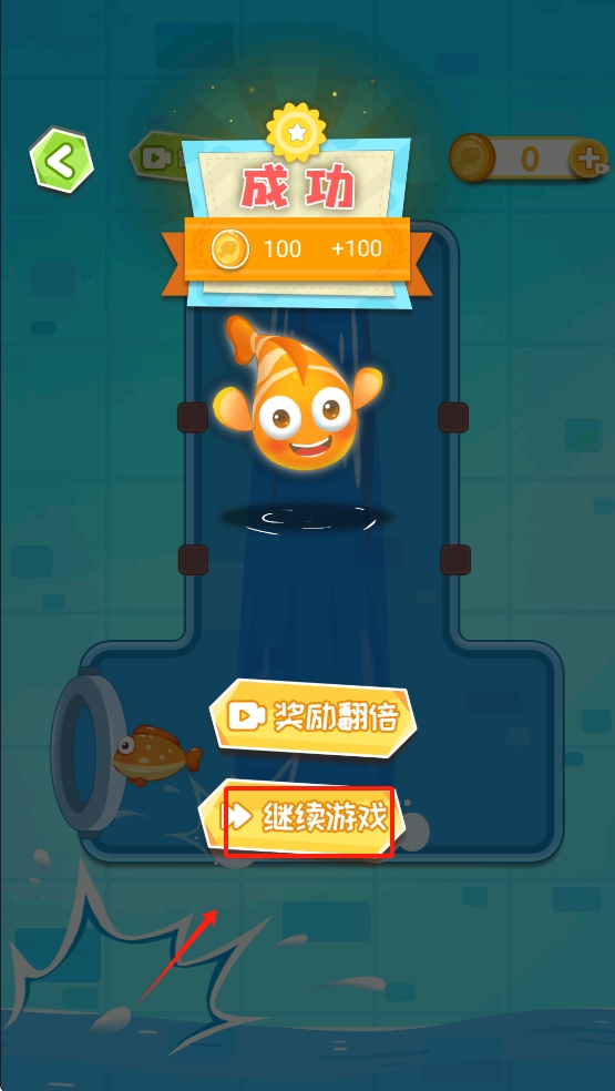 4、成功通关后点“奖励翻倍”领双倍金币,再按“继续游戏”解锁下一关。
