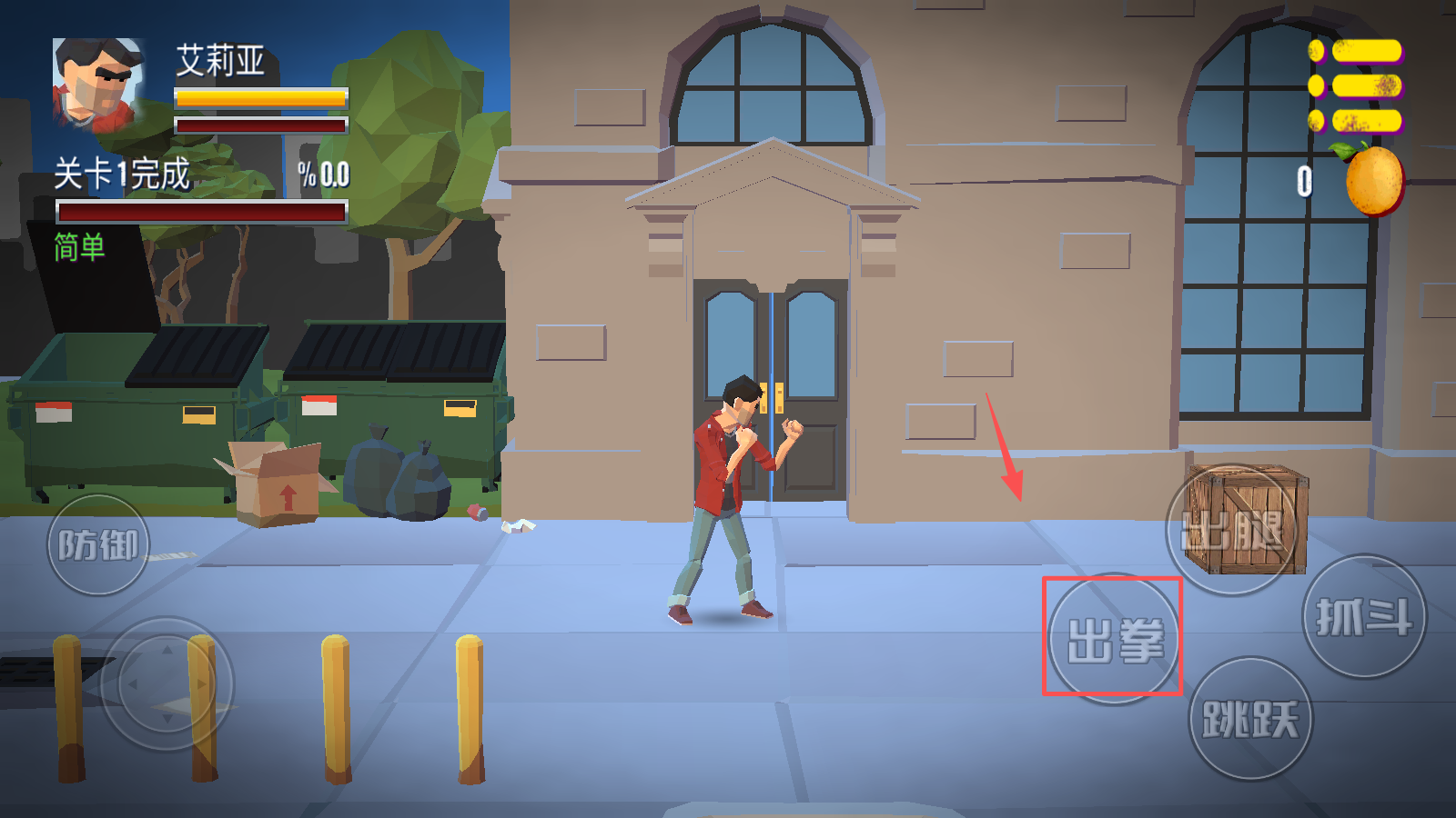 3、进行攻击。接近对手时,点击“出拳”按钮进行攻击,击败对手。