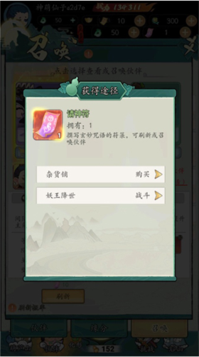在召唤伙伴的界面里,每次都会有3只伙伴出现,使用请神符就能刷新当前显示的伙伴。