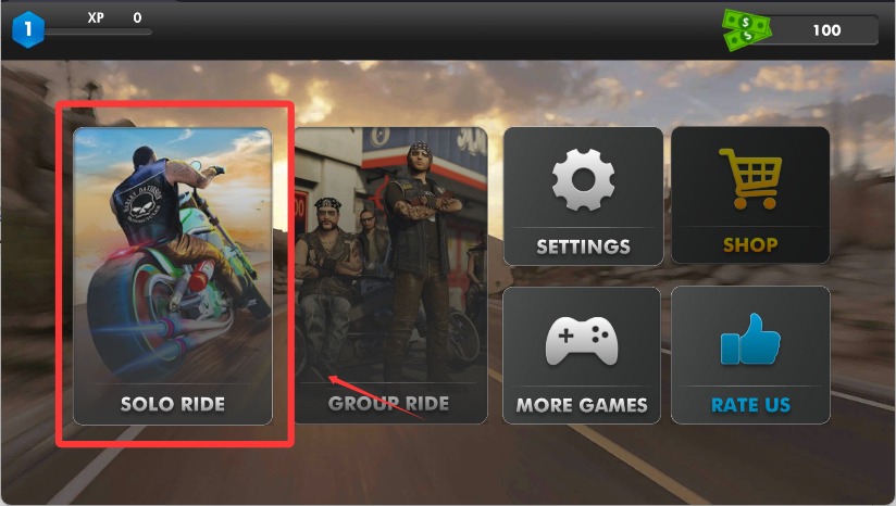 进入游戏后点击solo ride开始游戏。