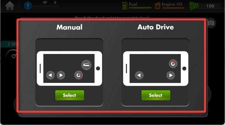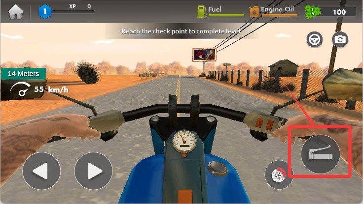 进入游戏后,若选择手动模式,点击右侧的油门就能让摩托车向前行驶。