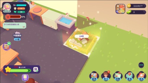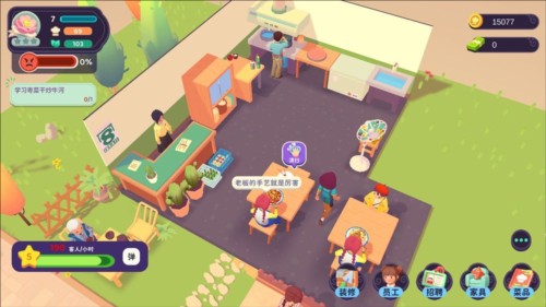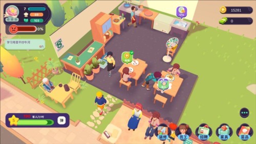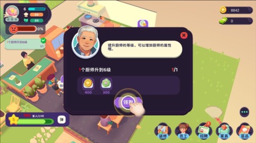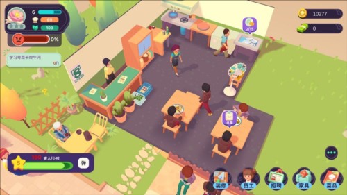 随着你接待的客人日益增多,餐厅积累起一定口碑后,就可以通过招聘服务员和厨师来提升服务顾客的效率,身为店长的你就能从繁琐事务中脱身,解放双手啦!