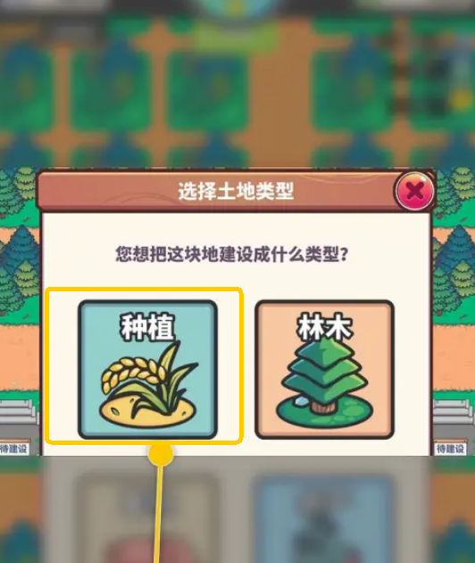 当系统弹出“选择土地类型”的操作界面后,需在可用选项中选定【种植】这一类别,以此明确土地的使用方向。