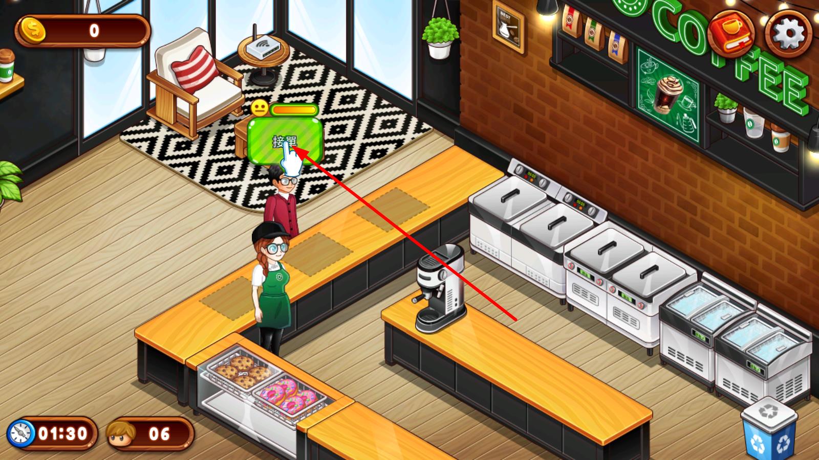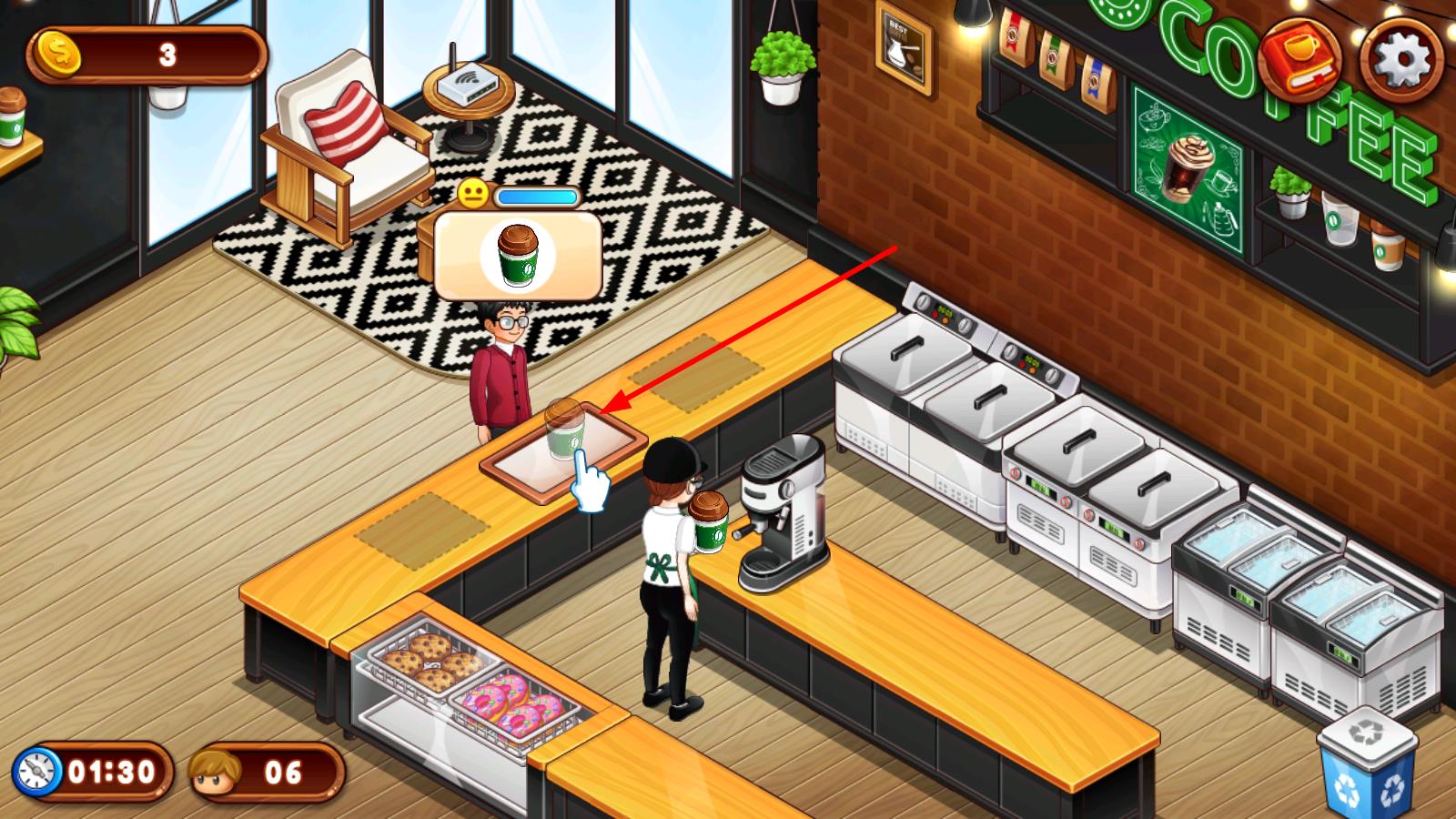 4、当咖啡制作完毕,点击制作好的咖啡,把它递交给相应的顾客,从而结束此次服务流程。