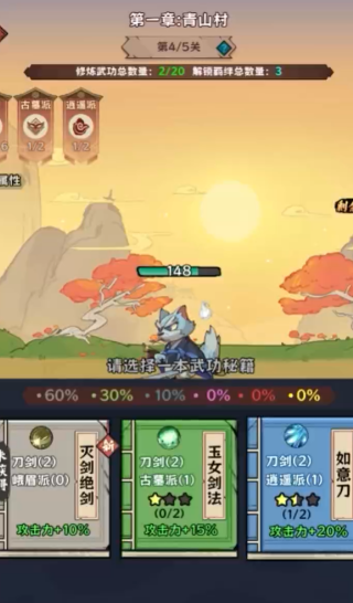 4、肉鸽冒险:每次重生,武学配置都会重置,让你体验不一样的修炼路径。