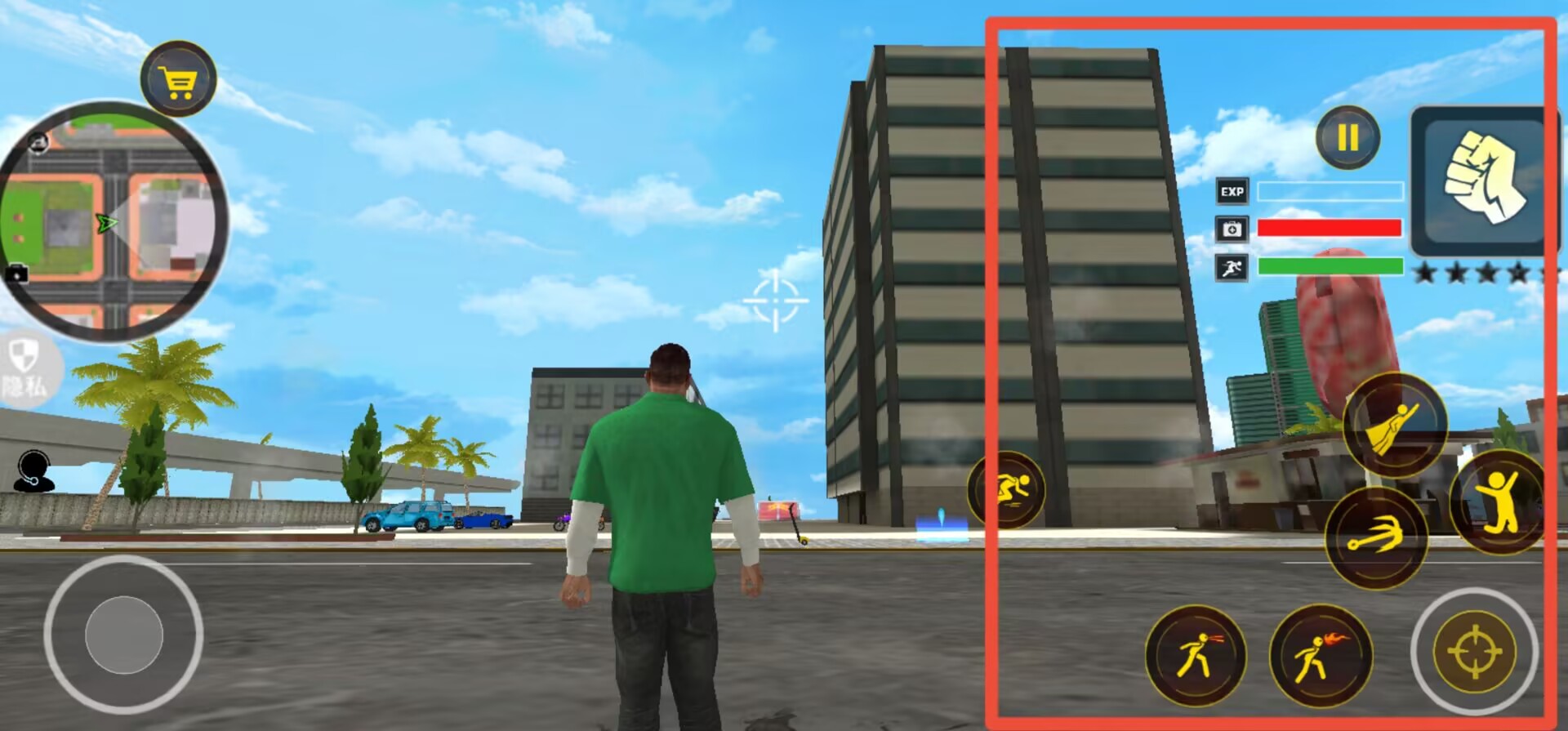 游戏设有日间与夜间两种场景模式可供选择,选定后进入游戏界面,其左侧会呈现小地图、商店入口以及移动控制区域。