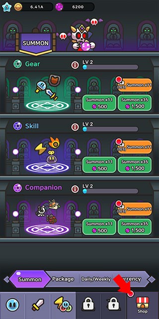 战斗时会掉落不少钻石,记得点击右下角的商城去抽取装备。