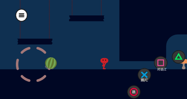 1. 基础操作运用三按钮设计,跳跃键用于跨越障碍,踢击键可触发机关,对话键则实现与场景角色的互动。