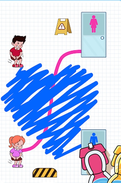 1. 在开始每一关之前,先留意小人与厕所所处的位置,以及两者之间障碍的分布情况。在脑海里大致构思出可能的连接路线,随后逐个排除那些不可行的线路。