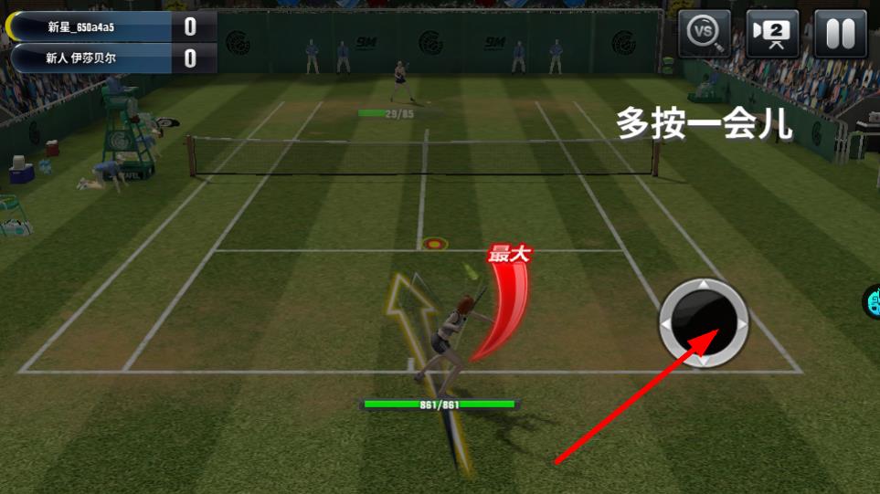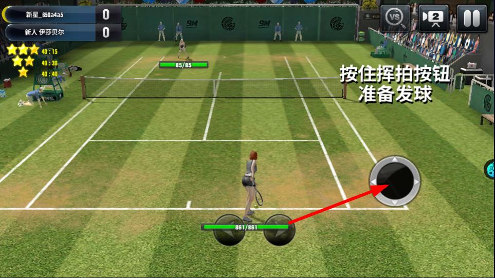 1. 按下并保持挥拍按钮,即可进入发球准备状态,此操作作为网球比赛进攻的起始动作,需精准把握按键时机。