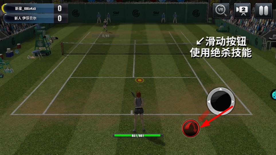 4、通过向右侧滑动按钮,能够对击球方向进行调整,精确地把球击向右侧区域,促使对手移动位置,从而创造进攻机会。