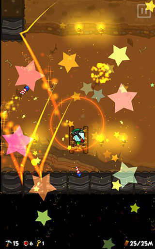 4、要是挖到炸药,它便能协助我们炸掉周边的土块;要是挖到电钻,它就会朝下挖掘,自动帮我们钻开地底的土块。