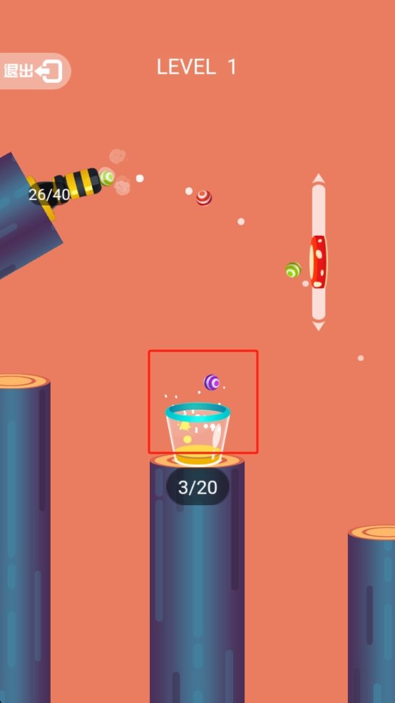 2、在发射小球期间,密切关注杯子的状态。一旦看到杯子上方显示彩色小球落入,就要持续把握好发射节奏,使小球持续不断地填充进去。