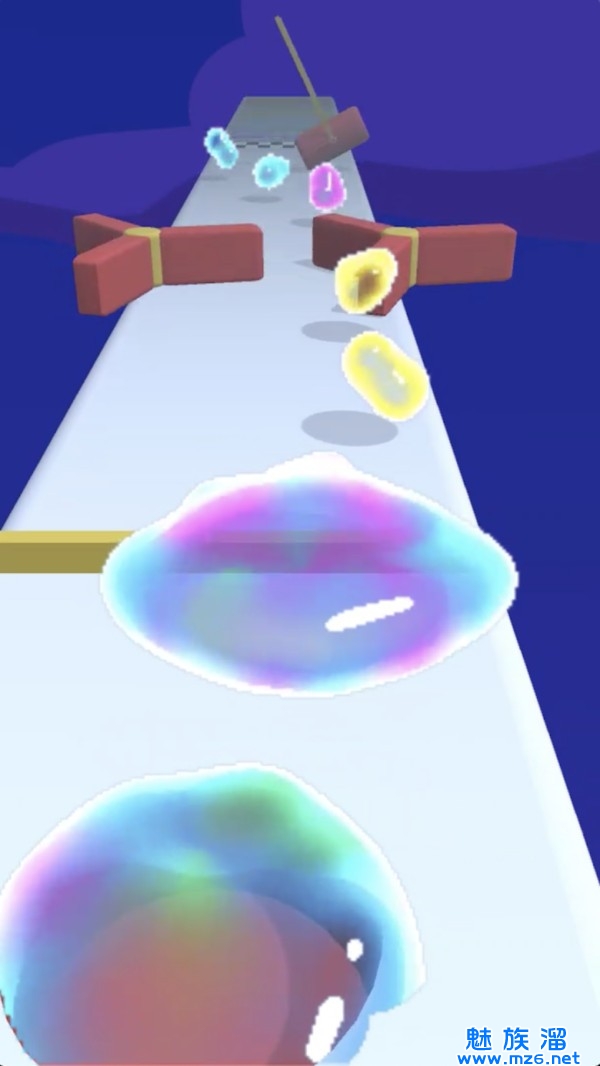 1.粘液快跑是一款有趣的休闲闯关游戏,操控你的粘液不断地向前流动并且以一个优美的姿态规避更多的障碍物