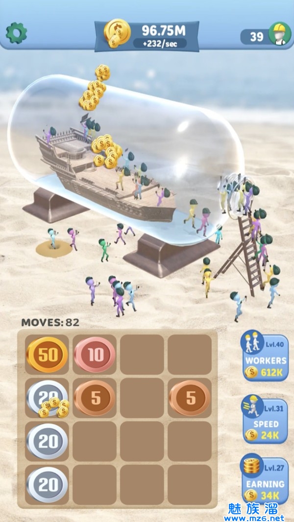 3、休闲的玩法配合轻松的音乐非常解压,并且允许玩家进一步挂机下去;