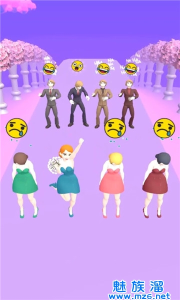 2、简单而有趣的机制,玩家可以控制一个新娘在赛道上奔跑,来控制对你的对手的攻击。