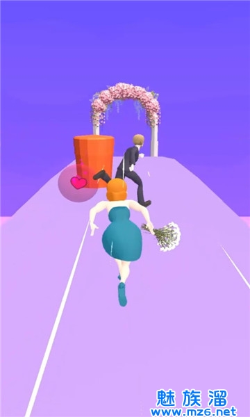 1、非常好玩的趣味休闲跑酷游戏,Q版卡通游戏画面,简单灵活的操作玩法,在新娘快跑中,玩家将控制新娘一路奔向新郎,不过沿途有很多障碍物,快速躲避,进行闯关;