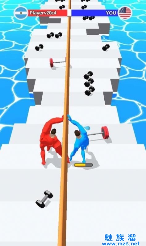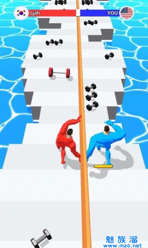 1.力量越大,占据的优势就越大,一路上也要收集杠铃和哑铃来提升自己的力量哦;