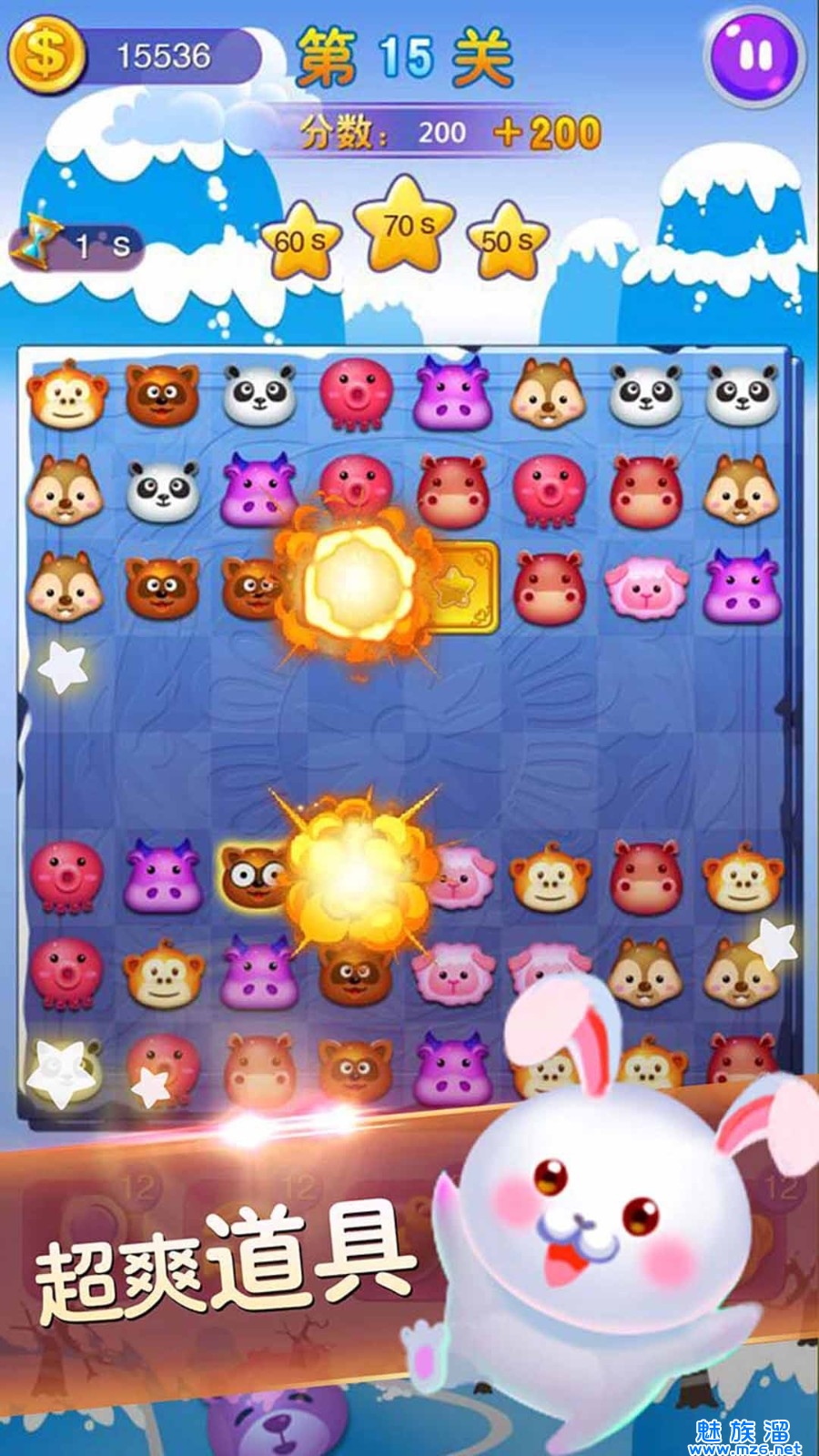 炸弹:随机清除一对小动物,快速推进游戏进度