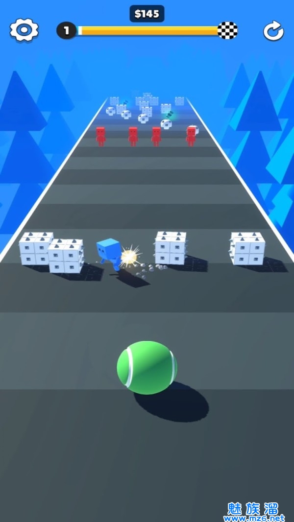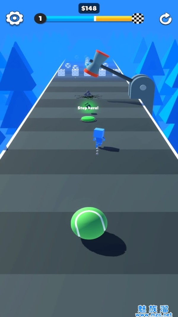1、玩家会在这里操控一个小人提前赶在球球前面冲刺前行,要为其扫除一切的危险和障碍。