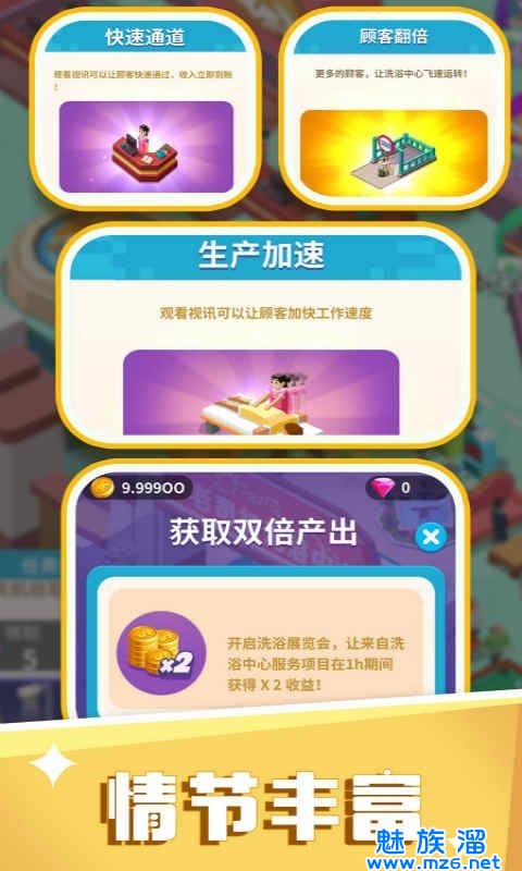 成为洗浴中心大亨,管理不同业务。打算投入资金,打造高级服务设施吗?您可以通过加薪,调动员工积极性,让他们拥有更高的服务效率。