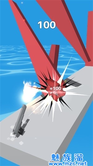 同时在道路上还有着各式各样的障碍物,你需要利用手枪来击碎障碍物,不断的前进。