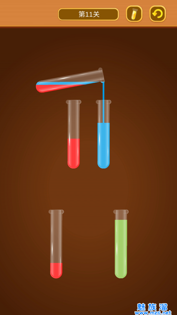 1、果汁爱消消,将相同颜色的果汁放在一起!