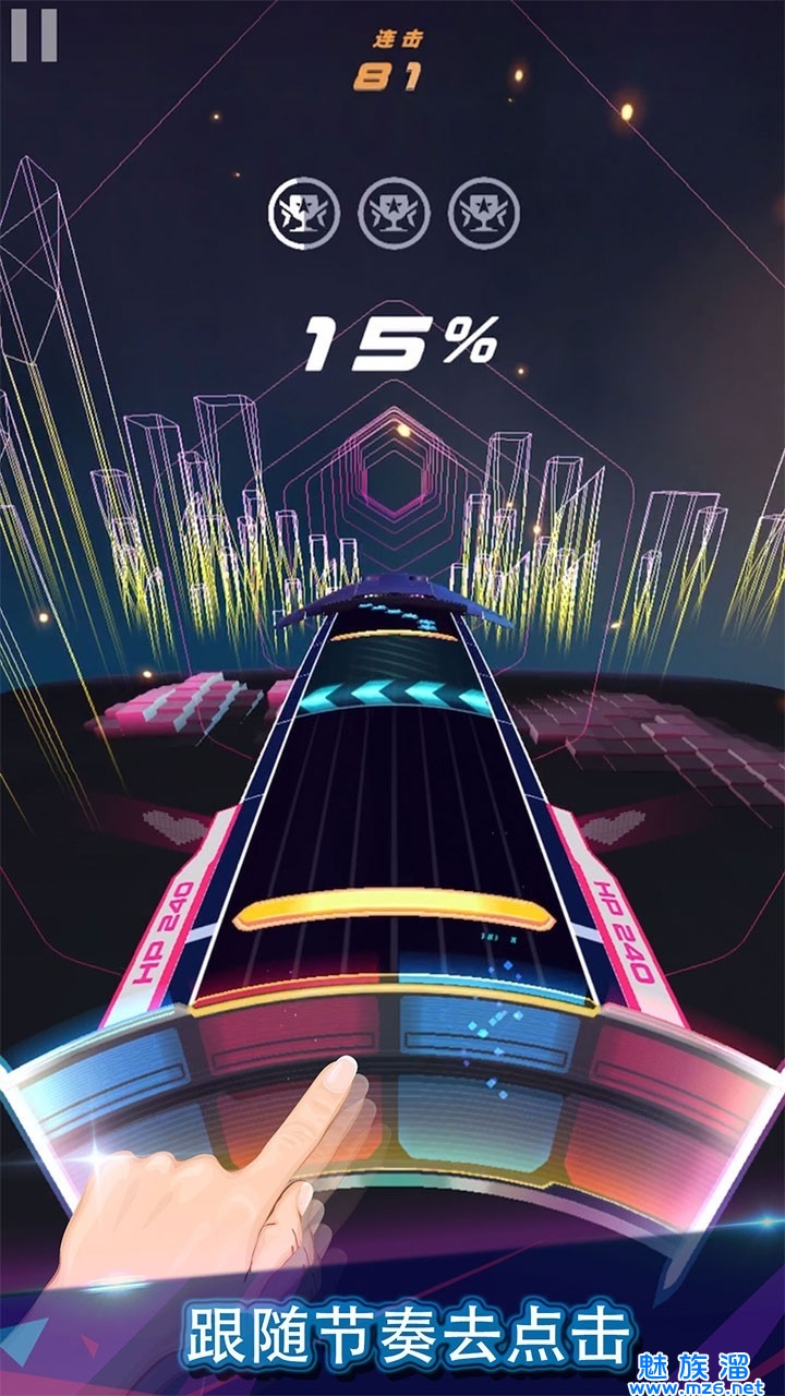 2. 超震撼的视觉效果, 每首歌都配置了不同风格的场景, 背景音浪与玩家操作完美互动, 再搭配过山车式的轨道, 拥有超强代入感.