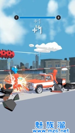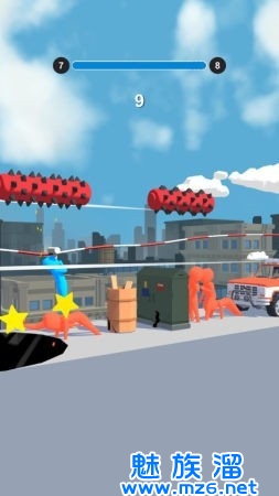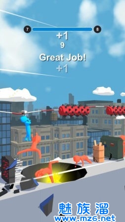 1、享受到一个有趣的游戏时光,尽情操控橡皮人利用绳索踢倒更多的敌人。