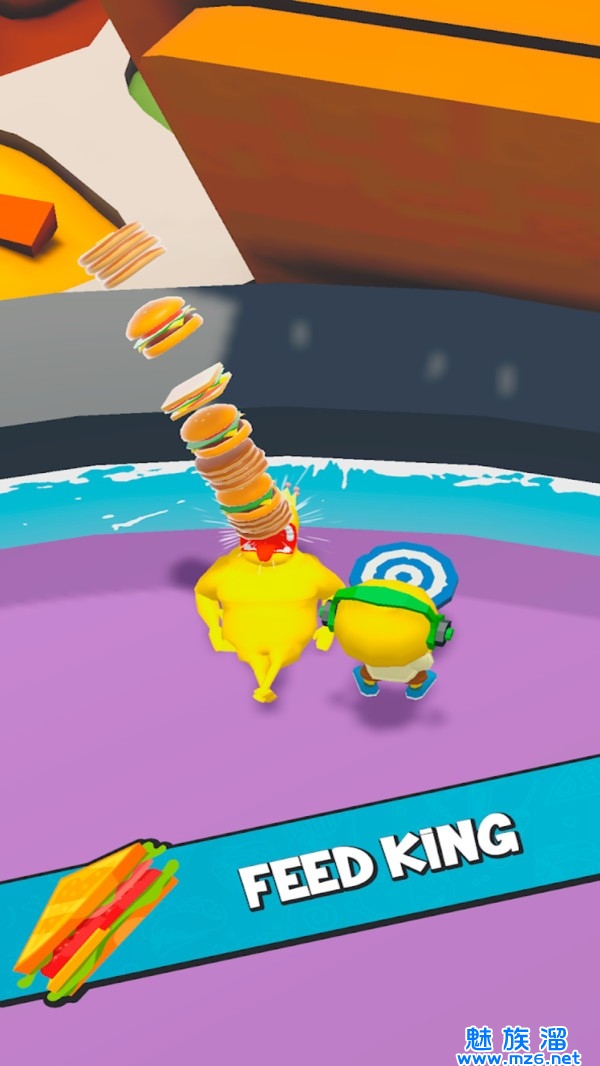 喂饱国王是一款十分魔性有趣的休闲闯关游戏,玩家需要操控小角色来不断的投送食物到国王嘴里,直到把他喂饱为止,最大的难点在于收集食物,并不是喂的过程,玩家需要操控小人争夺食物,千万不要被敌人夺走自己的食物,喂饱国王是需要技巧的,玩家需要灵活的走位躲避障碍物收集尽可能多的食物才行。