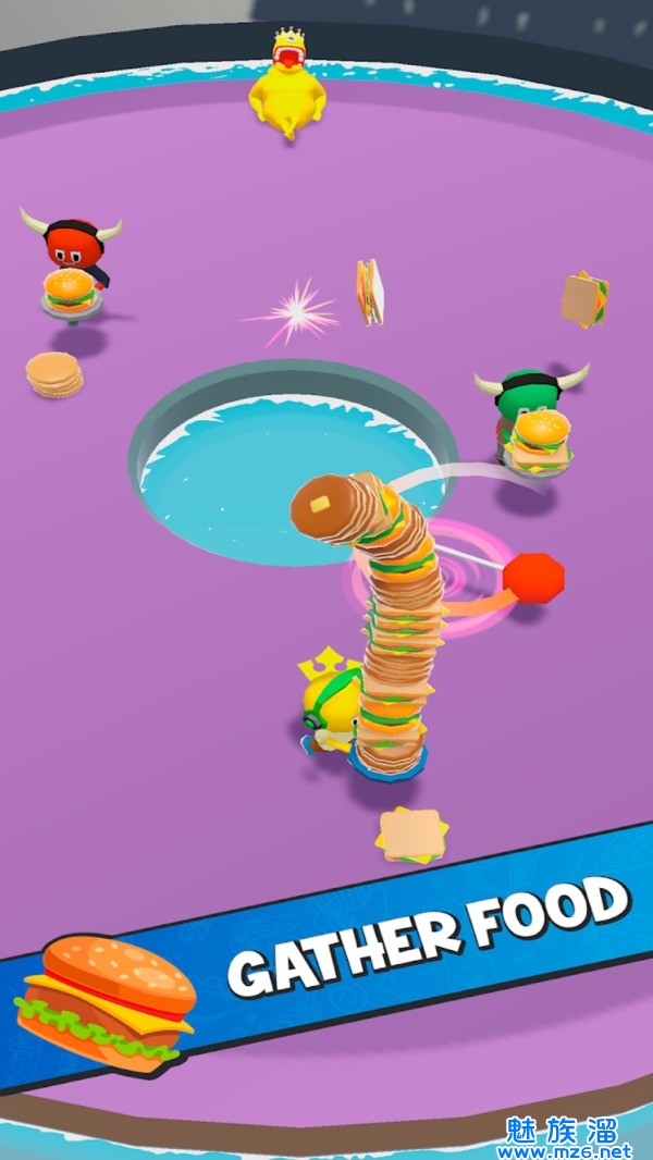 1、众多对手一同参加挑战,看看谁先收集到足够的食物喂饱自己的国王。